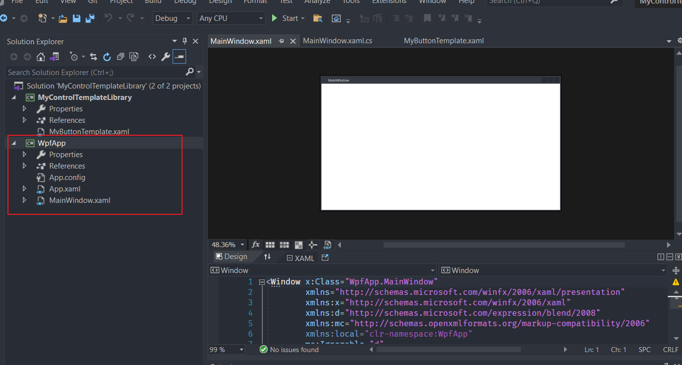 3. 新建一个WPF Application project来应用这个template